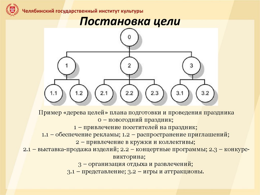 Постановка целиПример «дерева целей» плана подготовки и проведения праздника