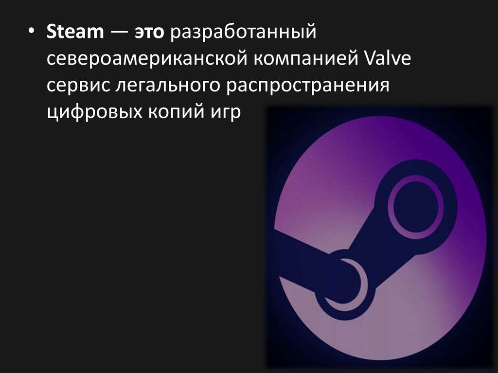 • Steam — это разработанныйсевероамериканской компанией Valve
