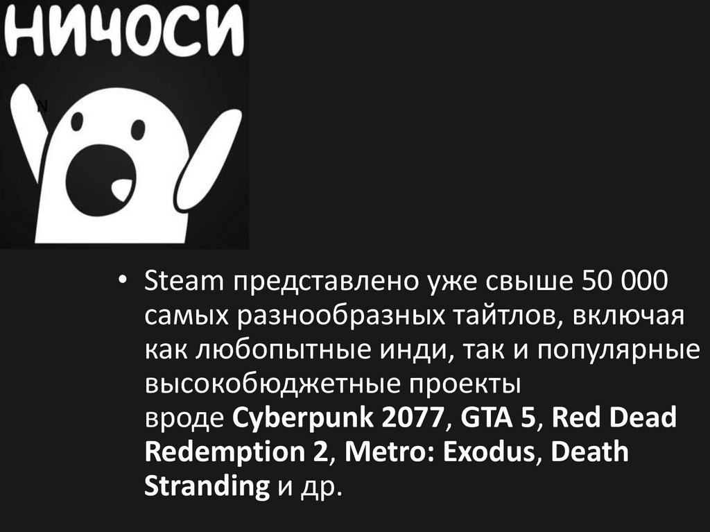 • Steam представлено уже свыше 50 000самых разнообразных тайтлов, включая