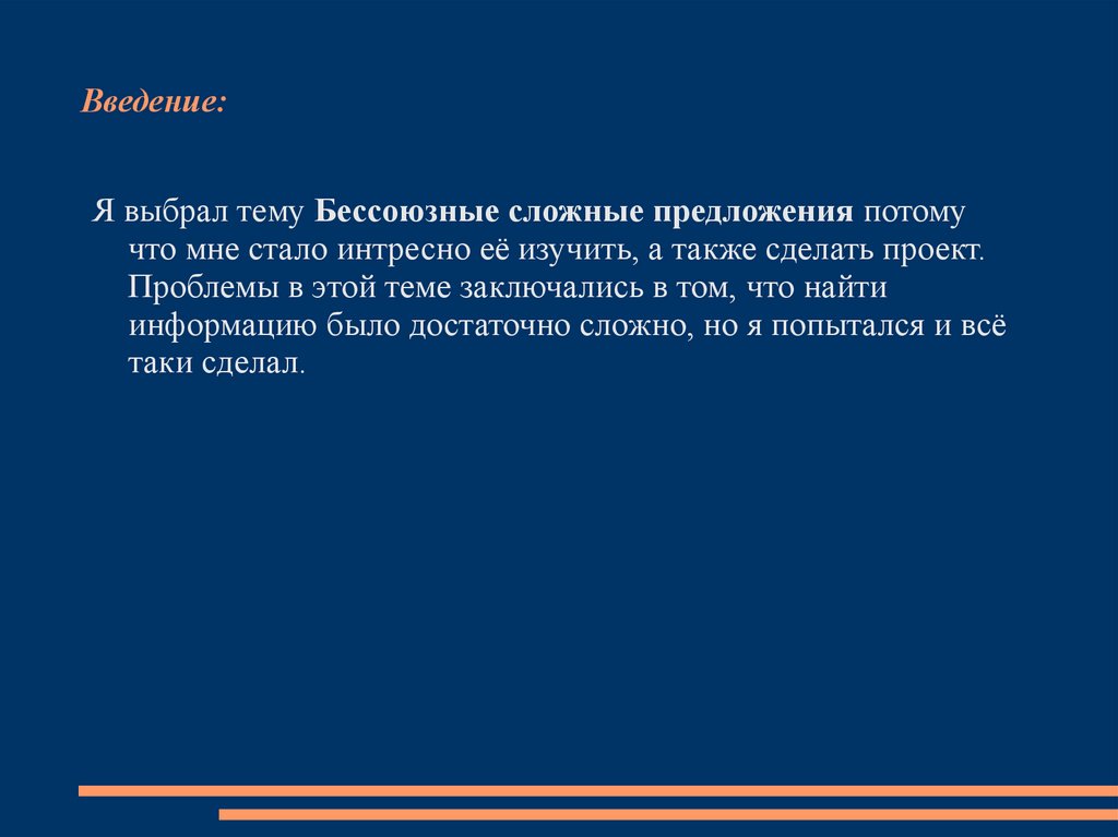 Введение:Я выбрал тему Бессоюзные сложные предложения потому