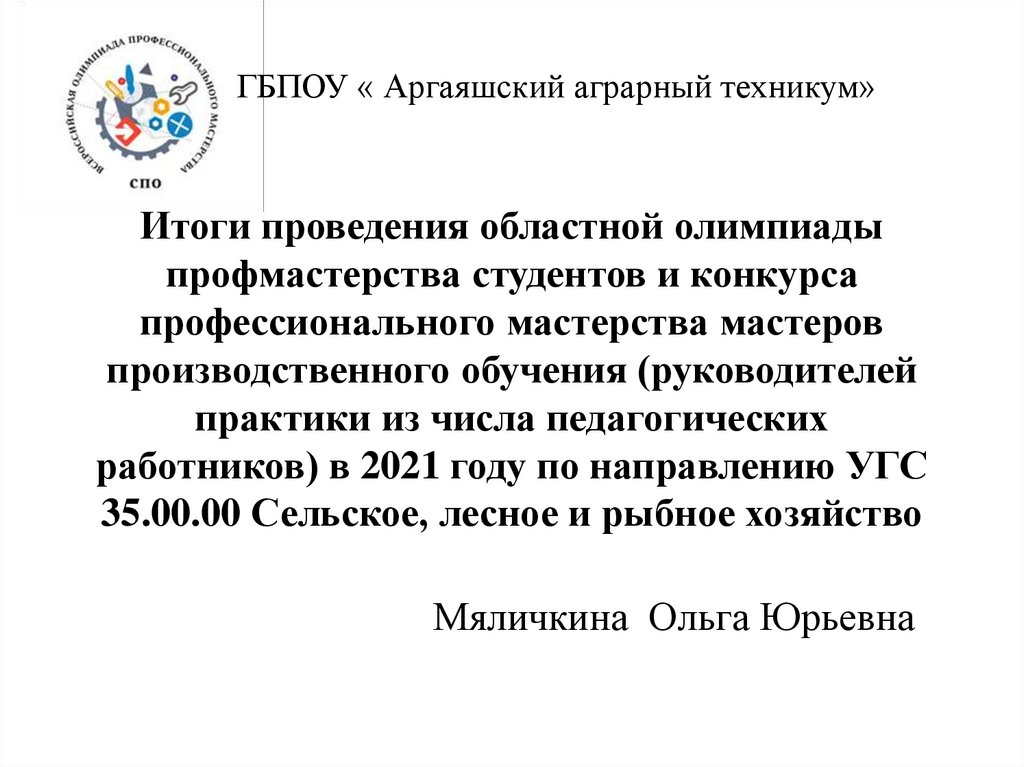 ГБПОУ « Аргаяшский аграрный техникум»Итоги проведения областной олимпиады