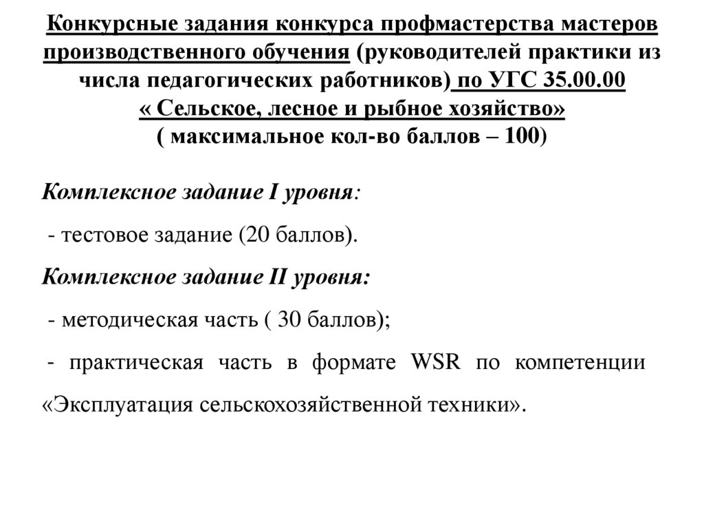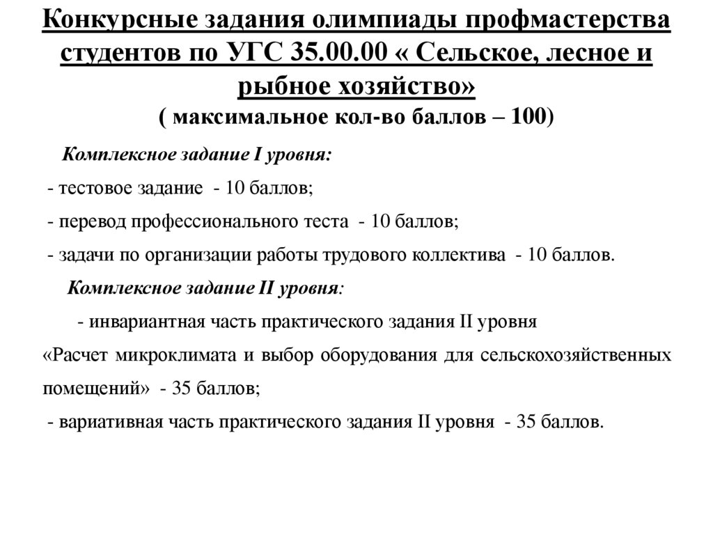 Конкурсные задания олимпиады профмастерствастудентов по УГС 35.00.00 « Сельское, лесное и