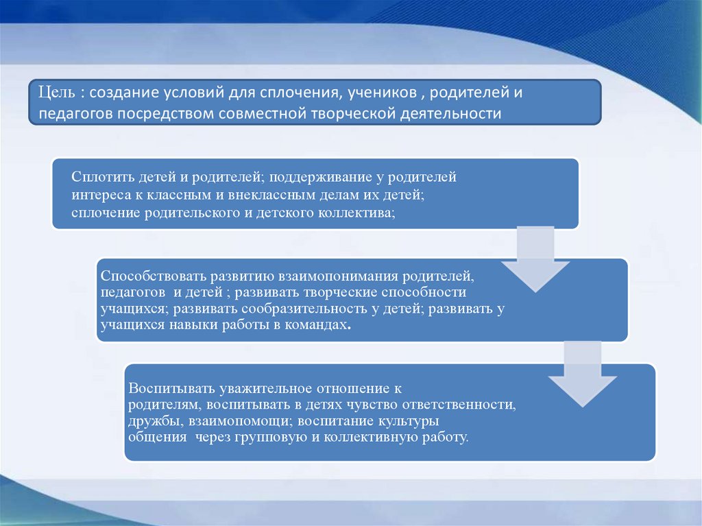 Создание условий для сплочения, учеников, родителей и педагогов посредством совместной творческой деятельности
