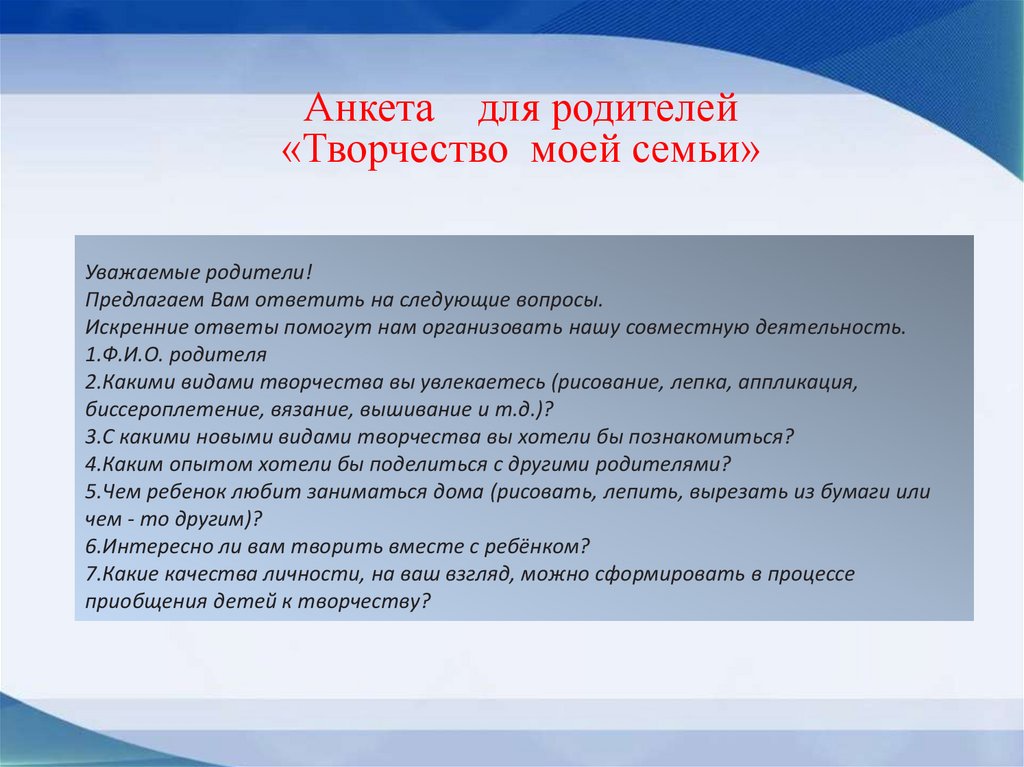 Искренние ответы помогут нам организовать нашу совместную деятельность.