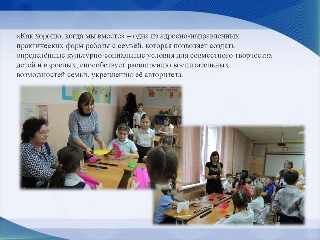«Как хорошо, когда мы вместе» – одна из адресно-направленныхпрактических форм работы с семьёй, которая позволяет создать