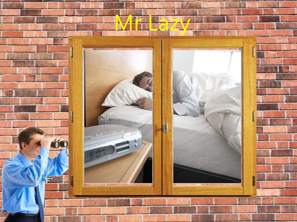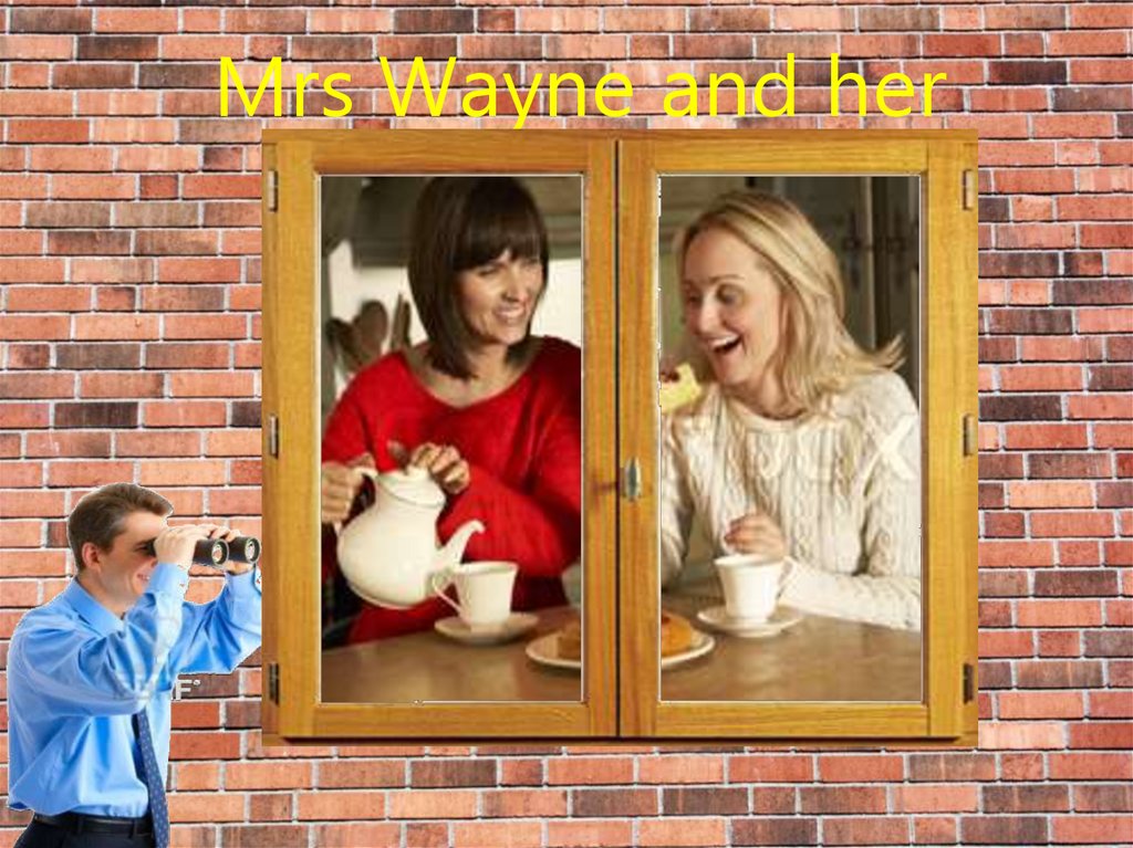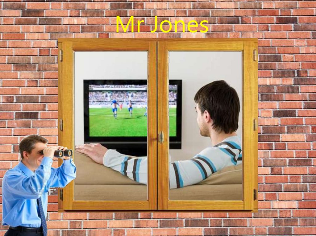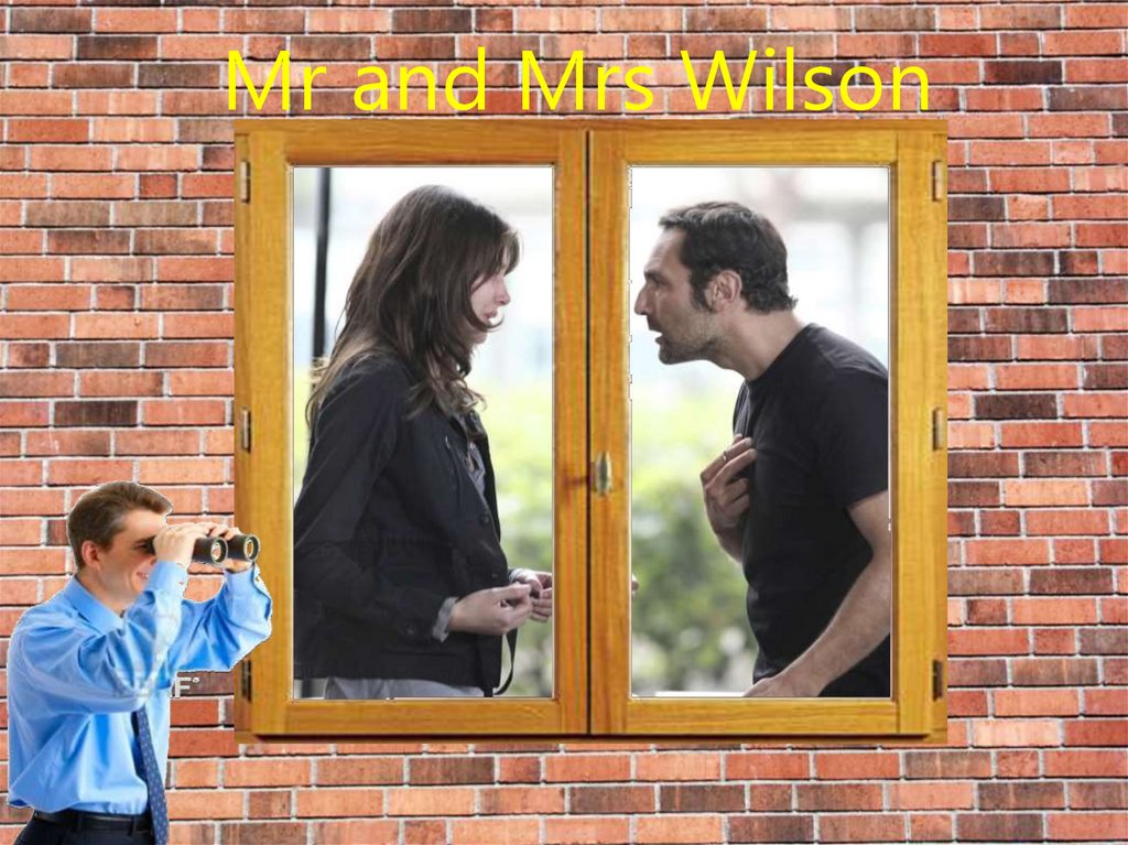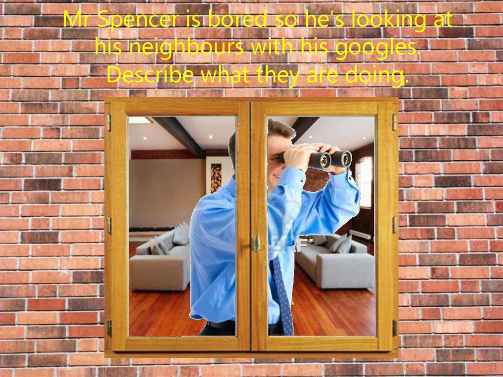 Mr Spencer is bored so he’s looking at his neighbours with his googles. Describe what they are doing