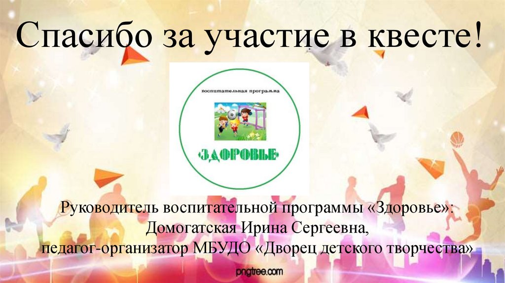 Спасибо за участие в квесте!Руководитель воспитательной программы «Здоровье»: