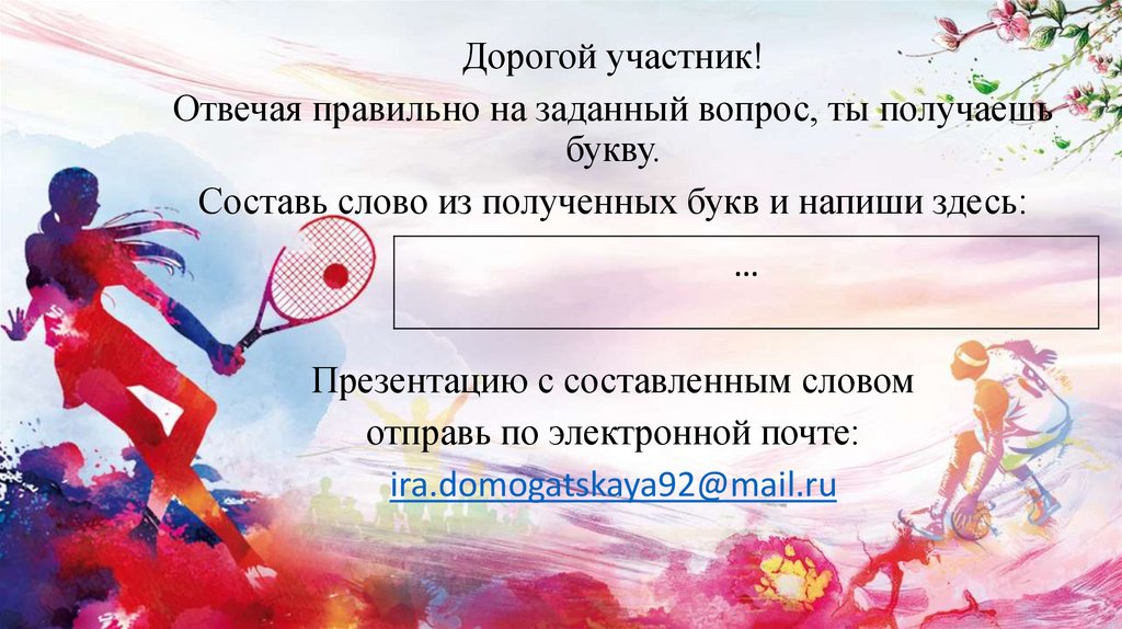 Дорогой участник!Отвечая правильно на заданный вопрос, ты получаешь