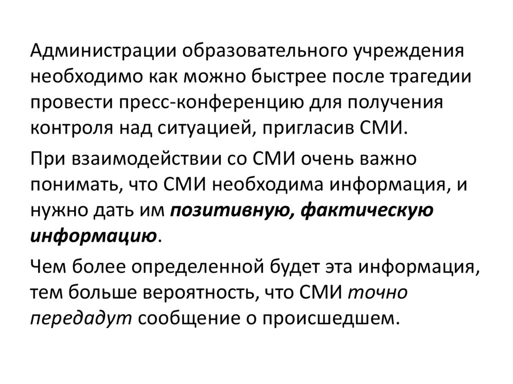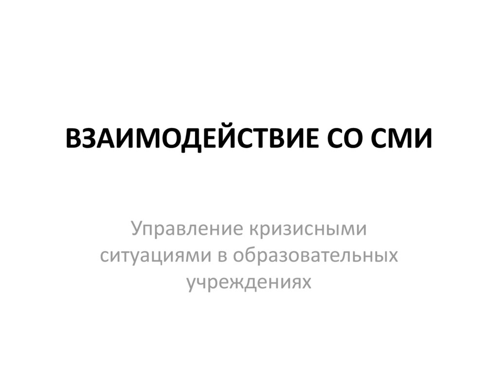 Управление кризисными ситуациями в образовательных учреждениях. Взаимодействие со СМИ