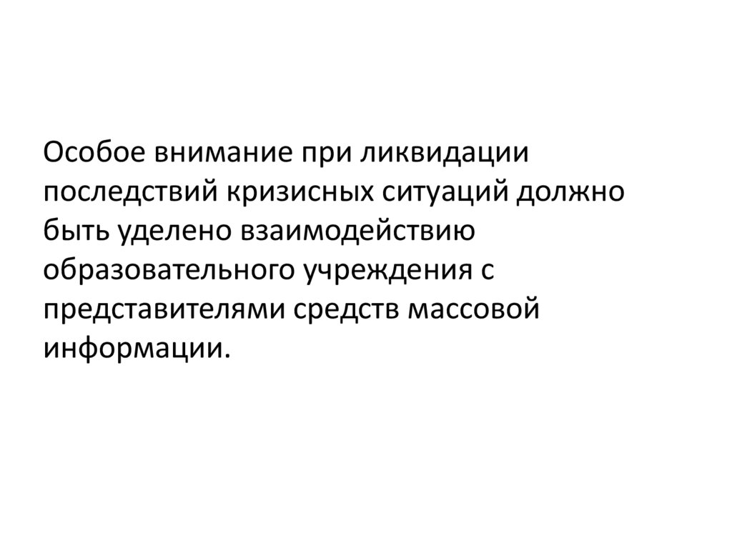 Особое внимание при ликвидациипоследствий кризисных ситуаций должно