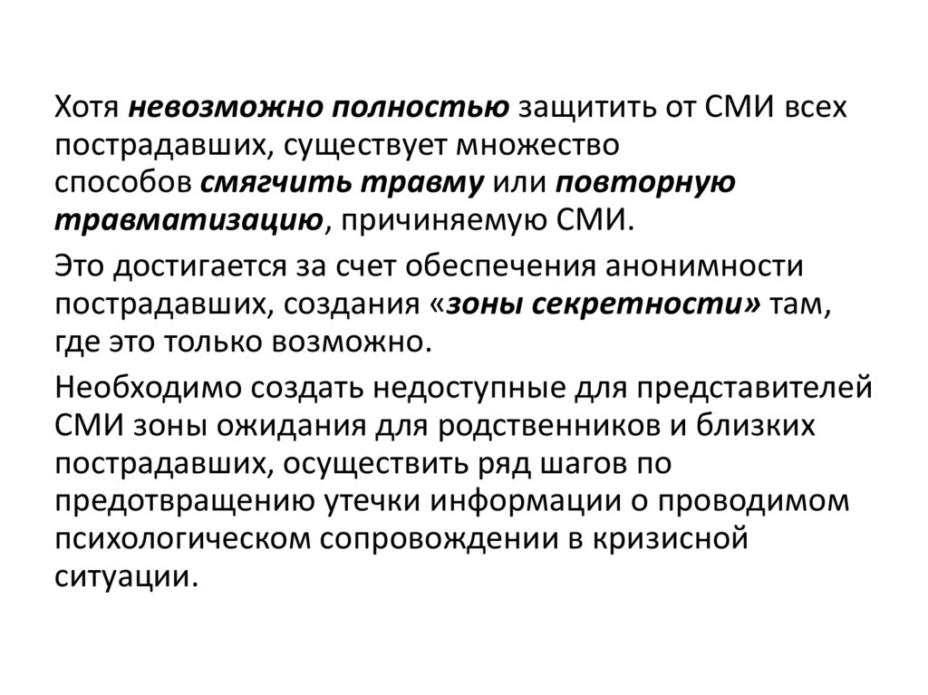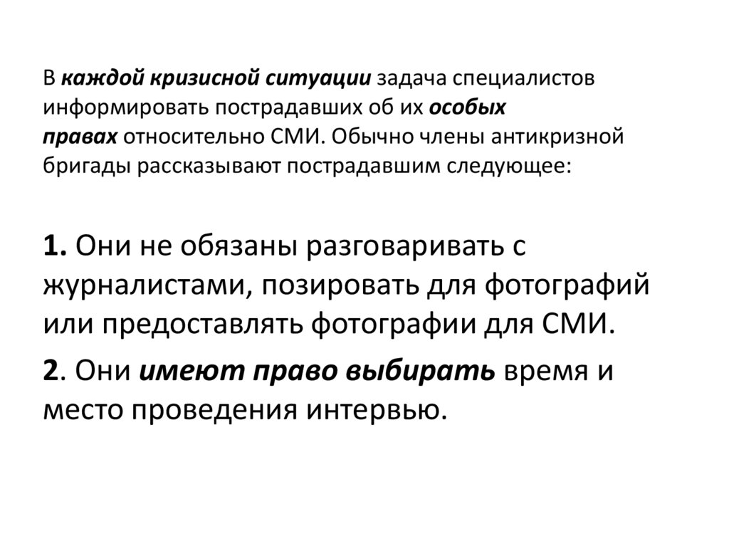 В каждой кризисной ситуации задача специалистовинформировать пострадавших об их особых