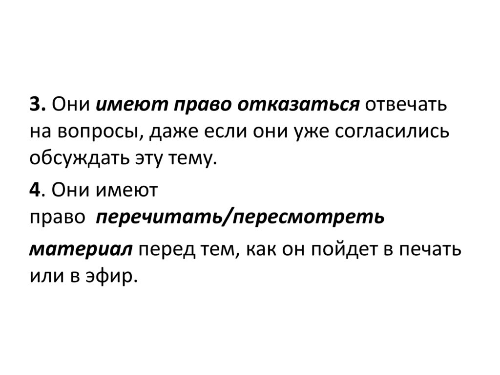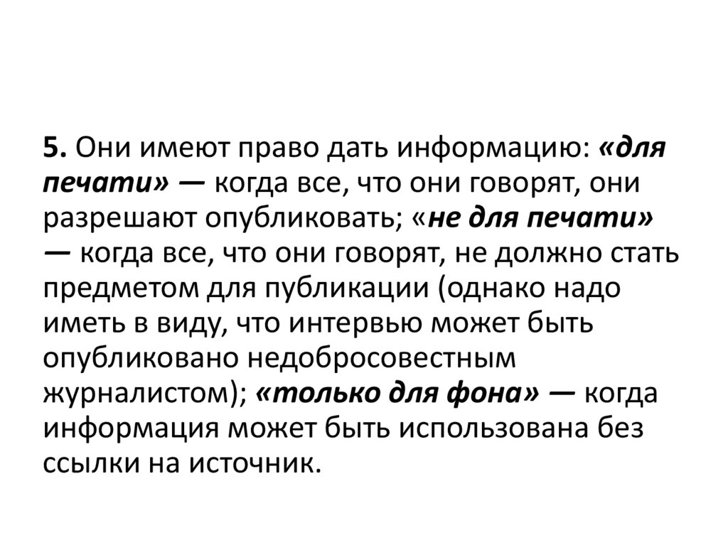 5. Они имеют право дать информацию: «дляпечати» — когда все, что они говорят, они