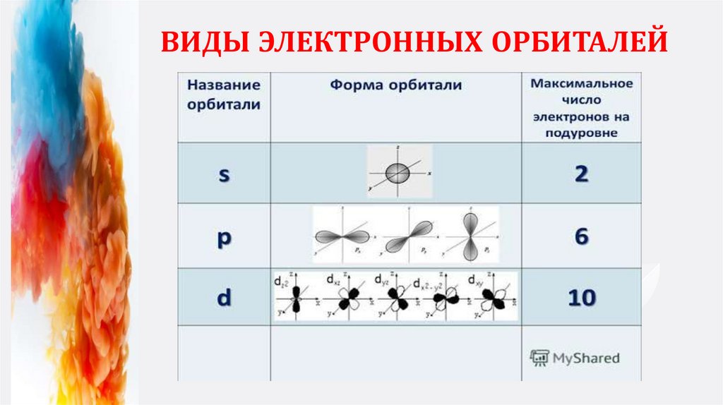 ВИДЫ ЭЛЕКТРОННЫХ ОРБИТАЛЕЙ7.