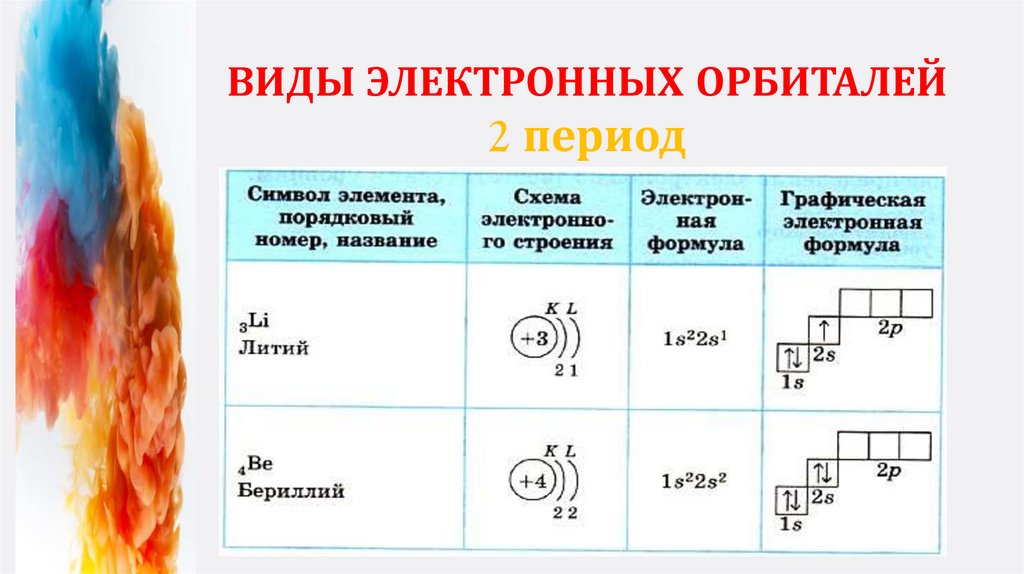ВИДЫ ЭЛЕКТРОННЫХ ОРБИТАЛЕЙ2 период