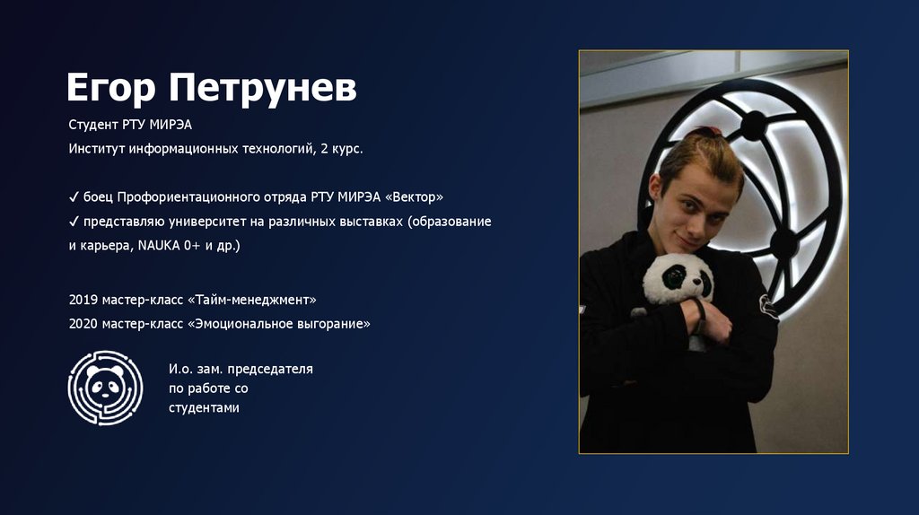 ✔ боец Профориентационного отряда РТУ МИРЭА «Вектор»