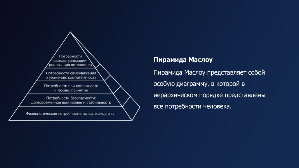 Пирамида МаслоуПирамида Маслоу представляет собой