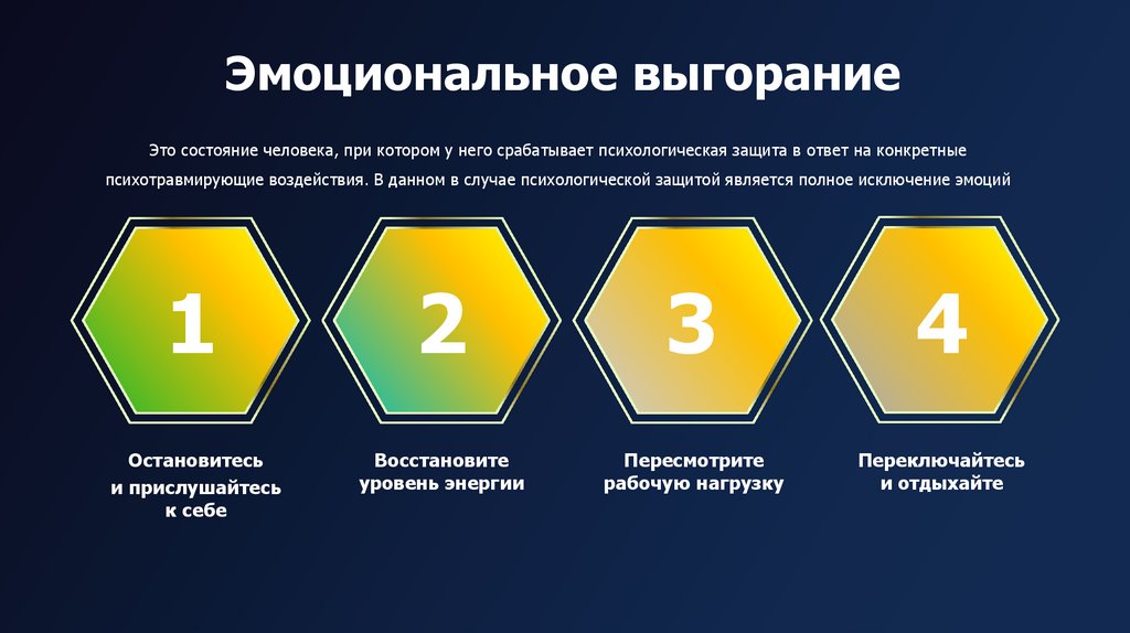 Эмоциональное выгораниеЭто состояние человека, при котором у него срабатывает психологическая защита в ответ на конкретные