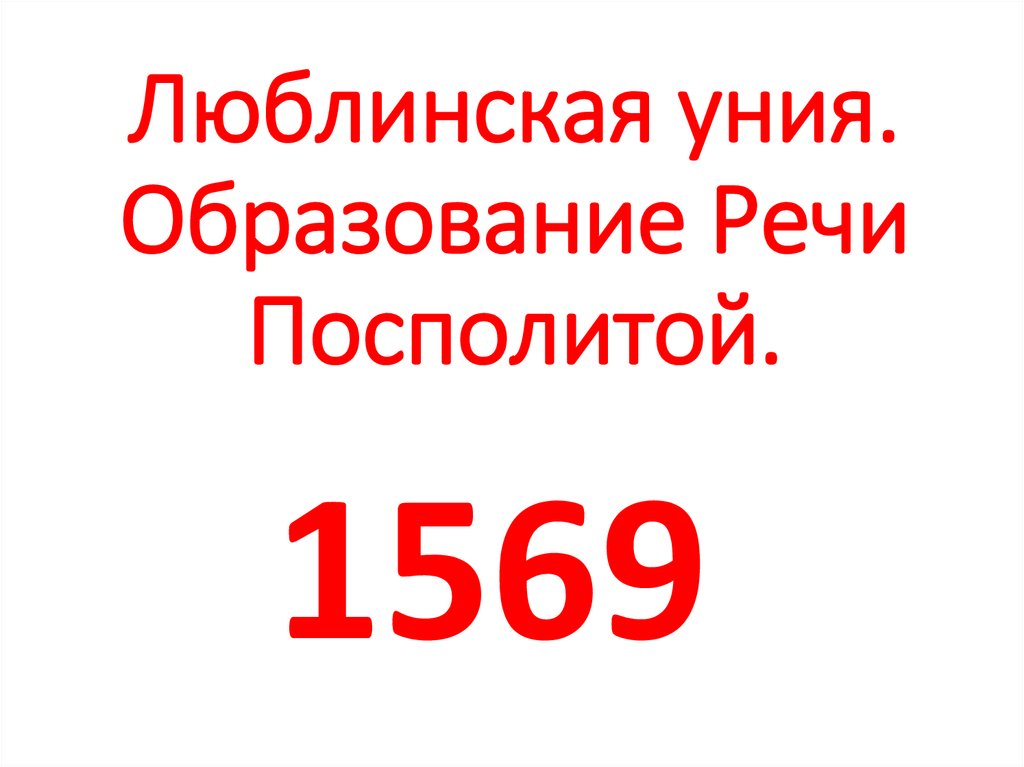 Люблинская уния.Образование Речи