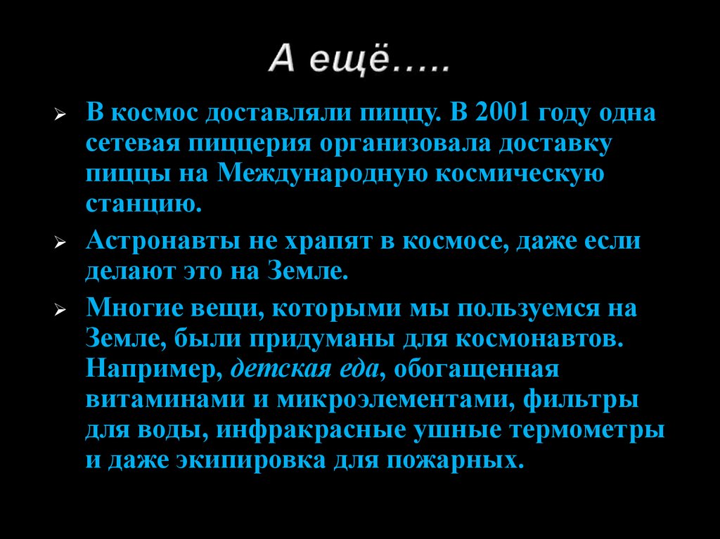 В космос доставляли пиццу. В 2001 году однасетевая пиццерия организовала доставку