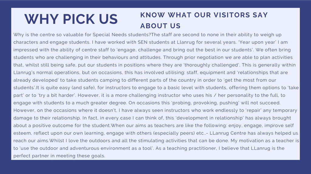 to ‘use the outdoor and adventurous environment as a tool’. As a teaching practitioner, I believe that LLanrug is the