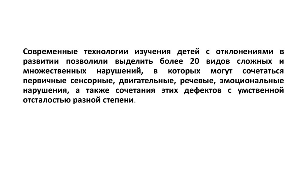 Современные технологии изучения детей c отклонениями вразвитии позволили выделить более 20 видов сложных и