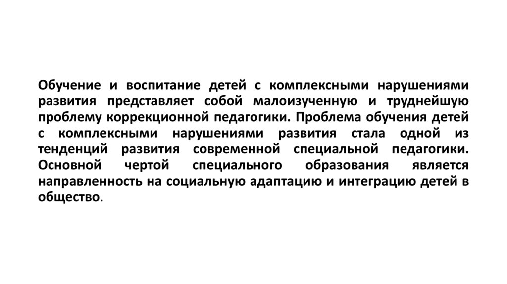 Обучение и воспитание детей с комплексными нарушениямиразвития представляет собой малоизученную и труднейшую