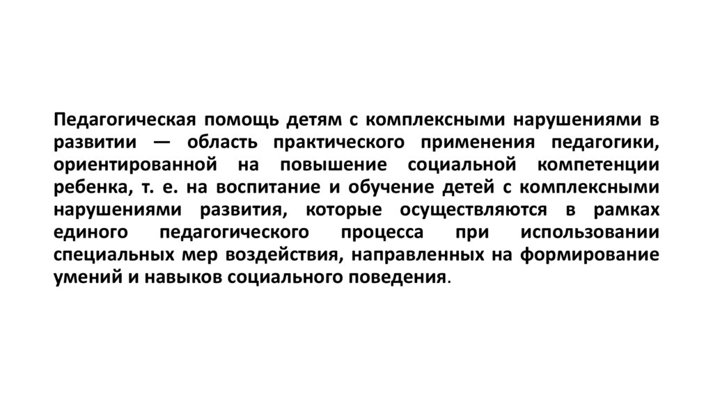Педагогическая помощь детям с комплексными нарушениями вразвитии — область практического применения педагогики,