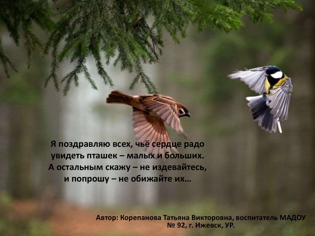 Я поздравляю всех, чьё сердце радоувидеть пташек – малых и больших.