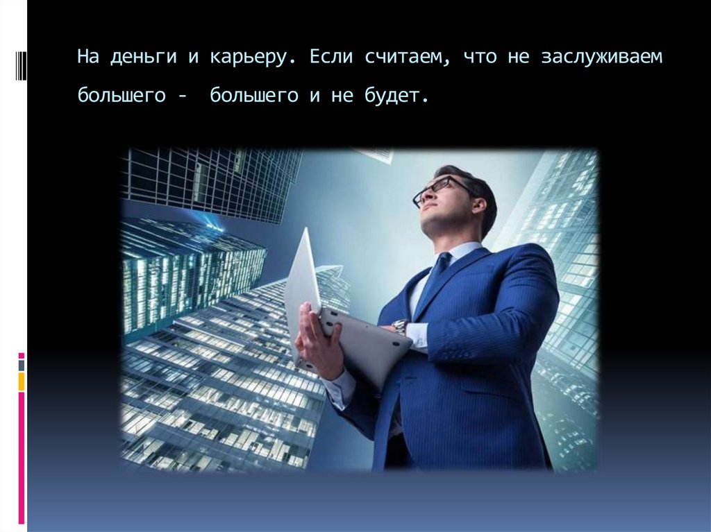 На деньги и карьеру. Если считаем, что не заслуживаембольшего - большего и не будет.
