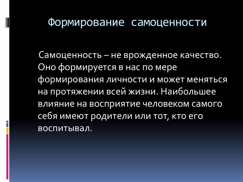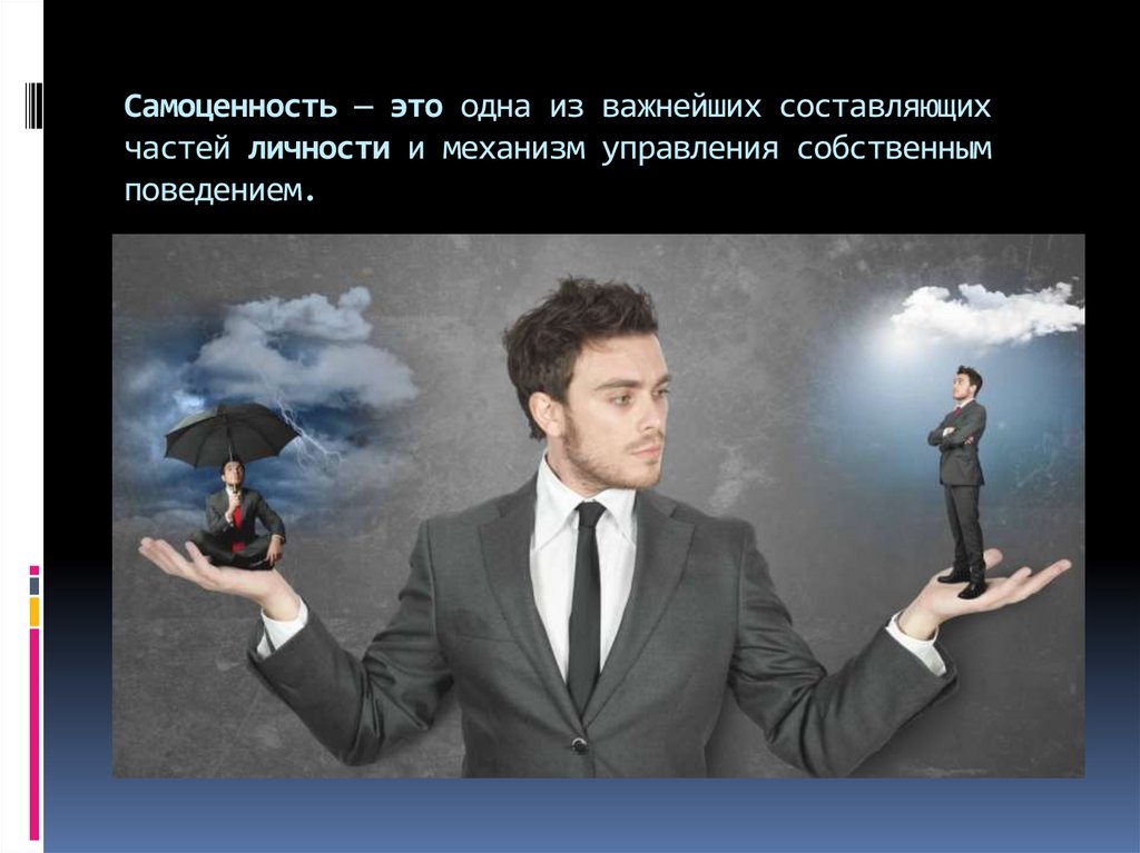Самоценность — это одна из важнейших составляющихчастей личности и механизм управления собственным