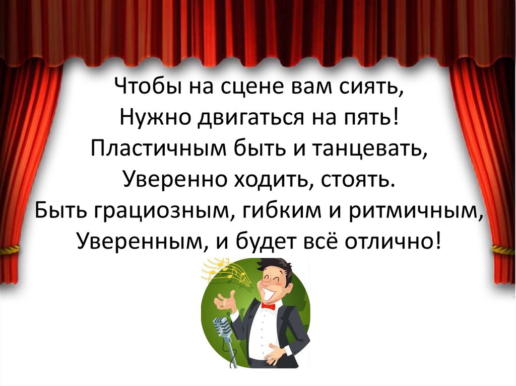 Чтобы на сцене вам сиять,Нужно двигаться на пять!