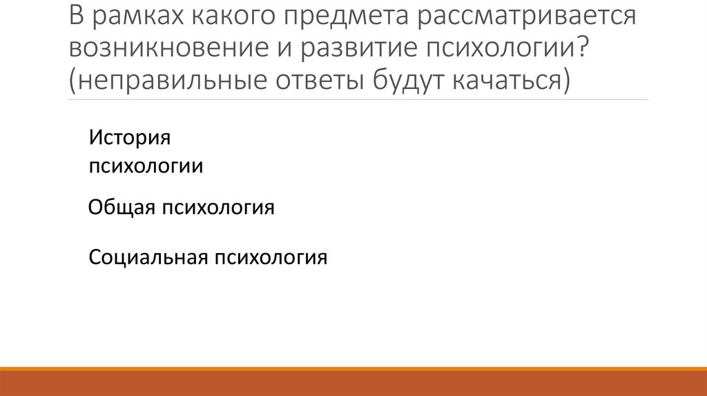 В рамках какого предмета рассматриваетсявозникновение и развитие психологии?