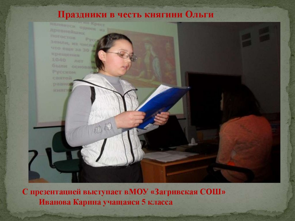 Праздники в честь княгини ОльгиС презентацией выступает вМОУ «Загривская СОШ»
