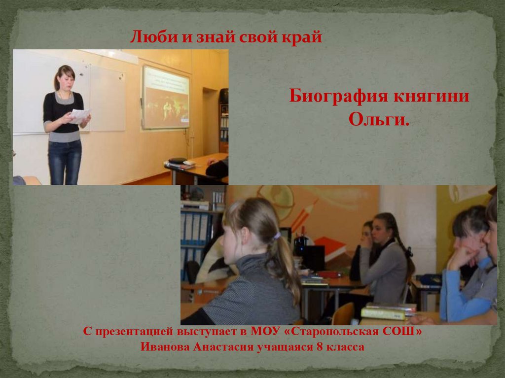 Имя Ольги в искусстве.С презентацией выступает в МОУ