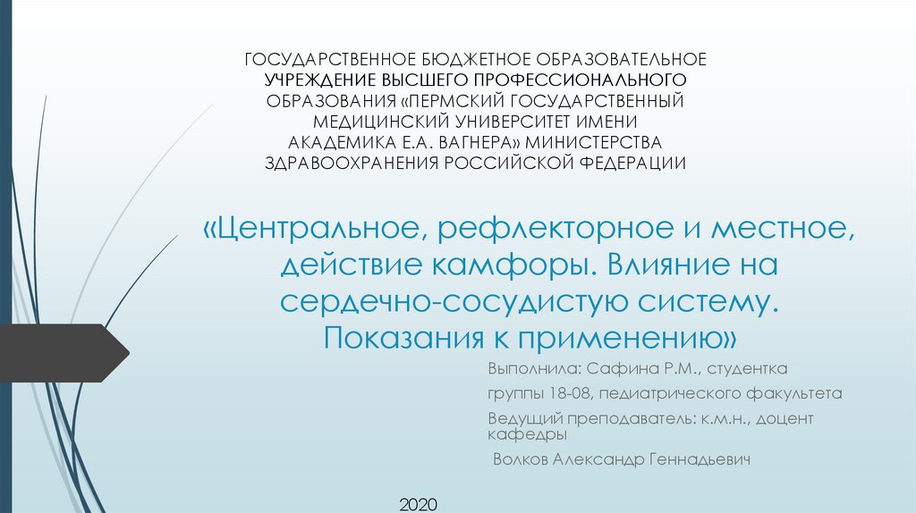 Центральное, рефлекторное и местное, действие камфоры. Влияние на сердечно-сосудистую систему