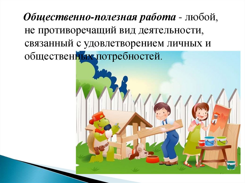 Общественно-полезная работа - любой,не противоречащий вид деятельности,