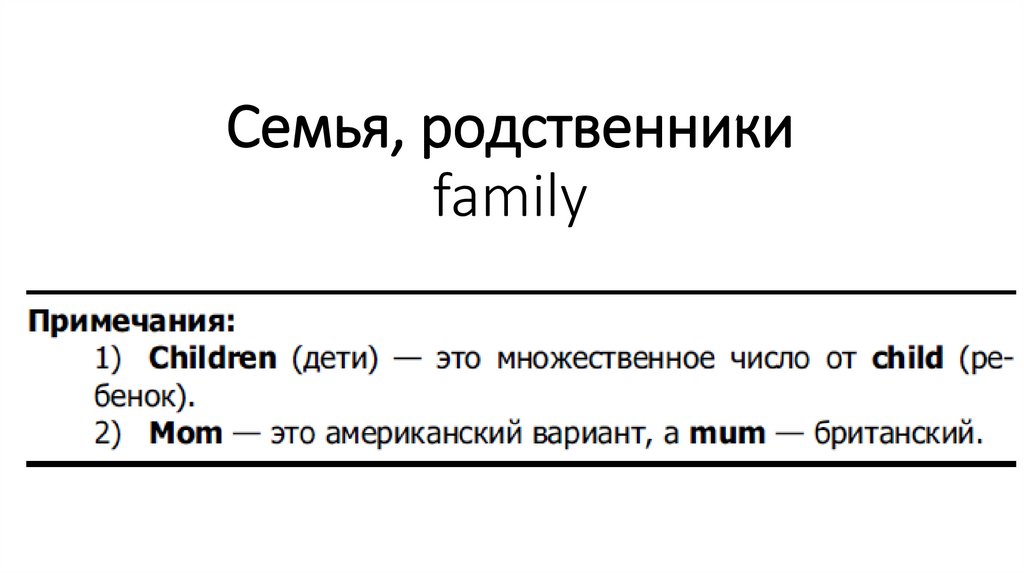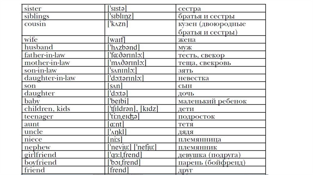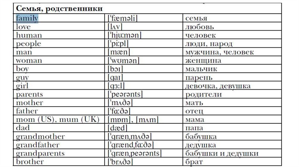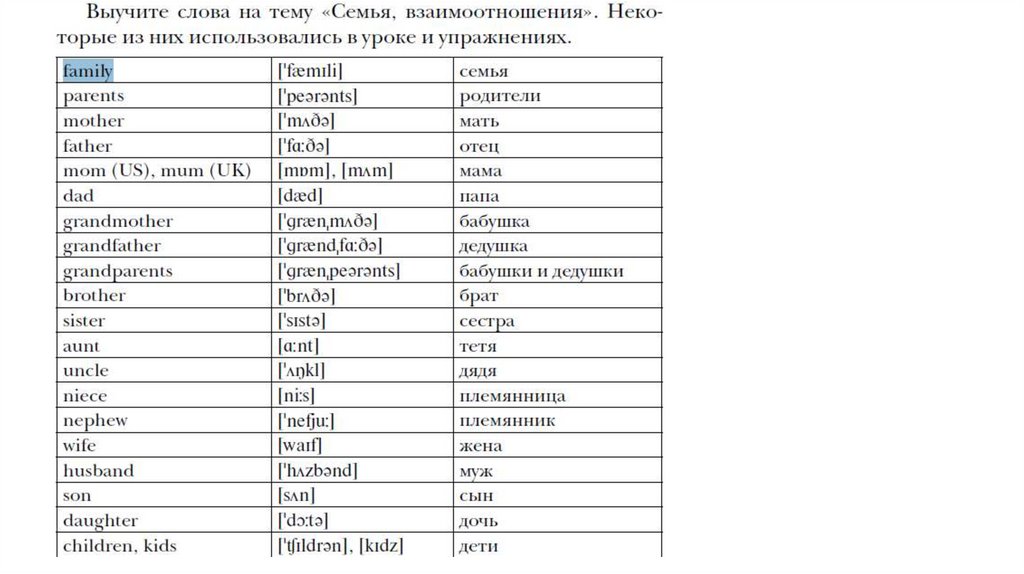 Words/Слова. Family and relatives/ Семья и родственники