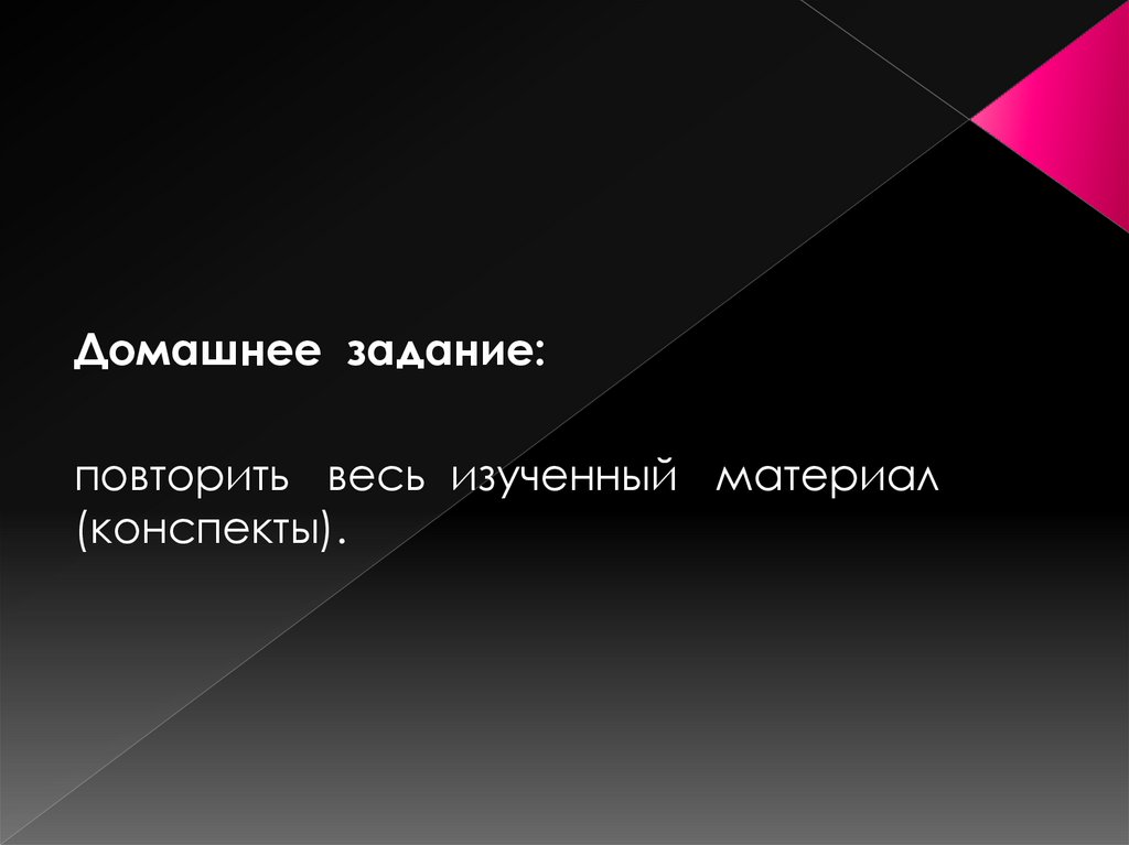 Домашнее задание:повторить весь изученный материал
