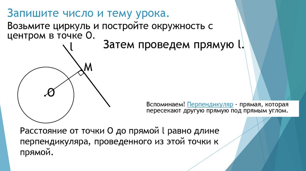 Запишите число и тему урока.Возьмите циркуль и постройте окружность с