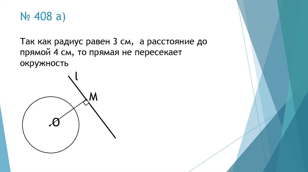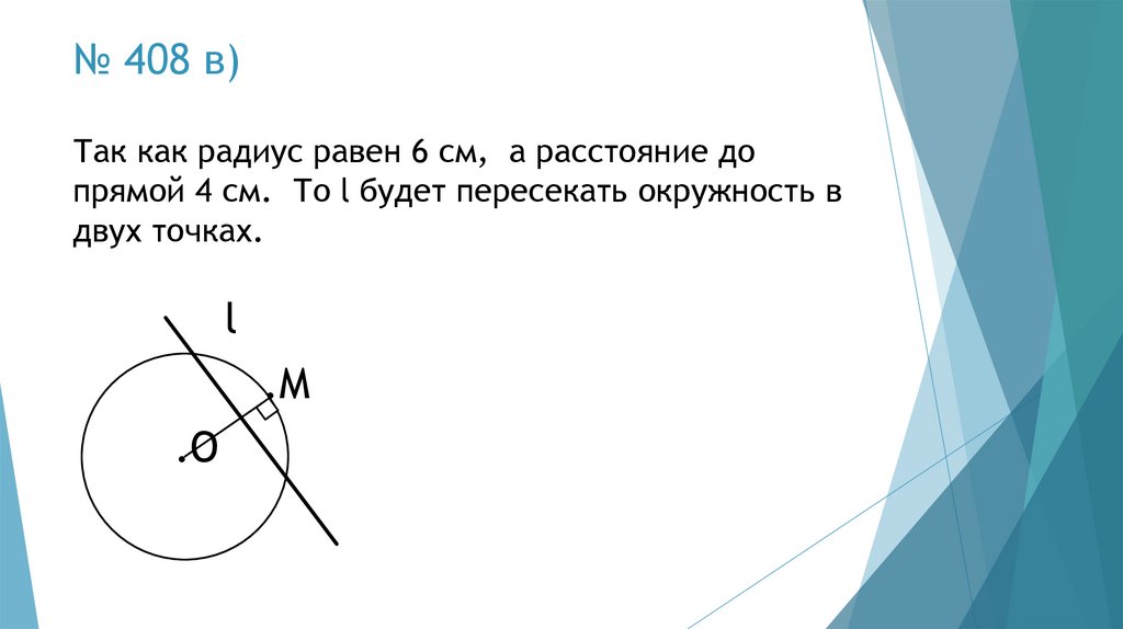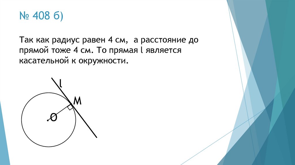 № 408 б)Так как радиус равен 4 см, а расстояние до