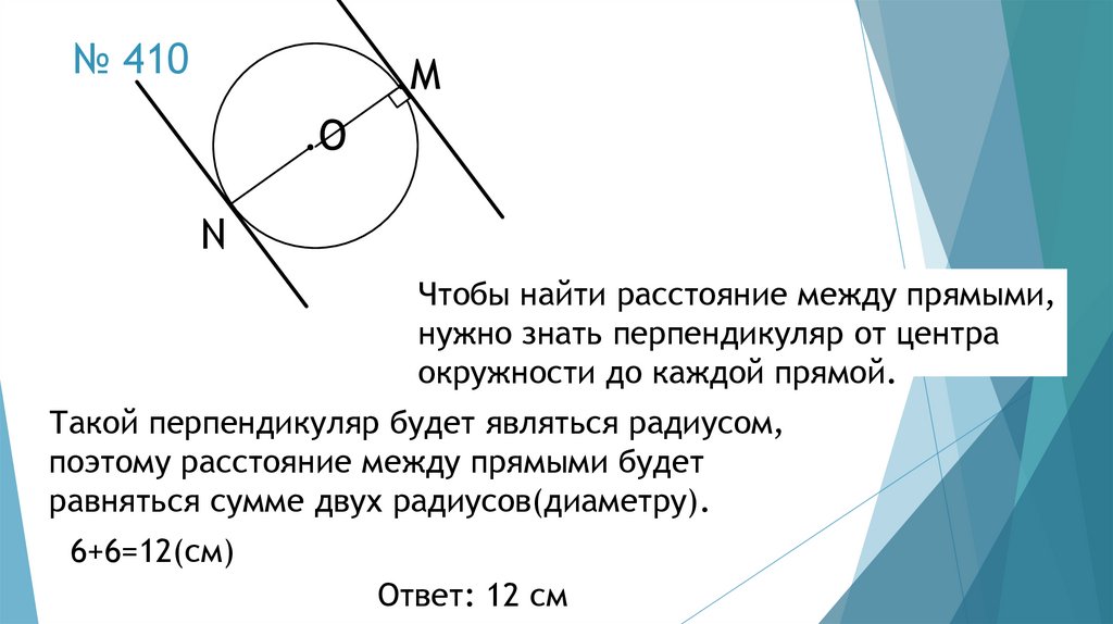 № 408 в)Так как радиус равен 6 см, а расстояние до