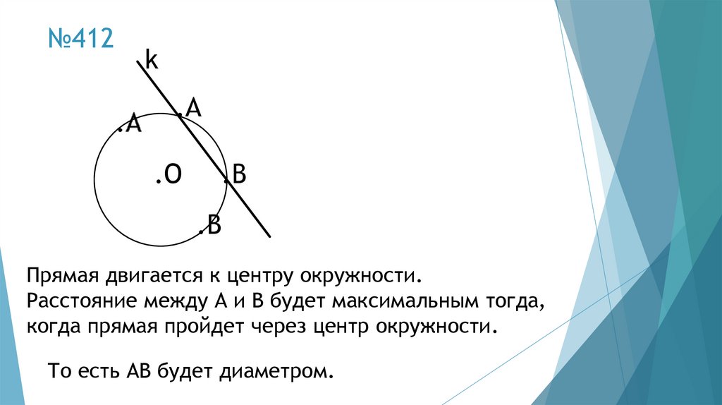 Прямая двигается к центру окружности.