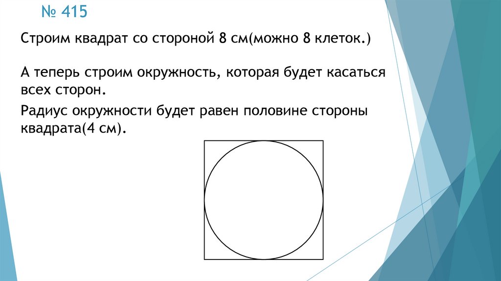 № 415Строим квадрат со стороной 8 см(можно 8 клеток.)
