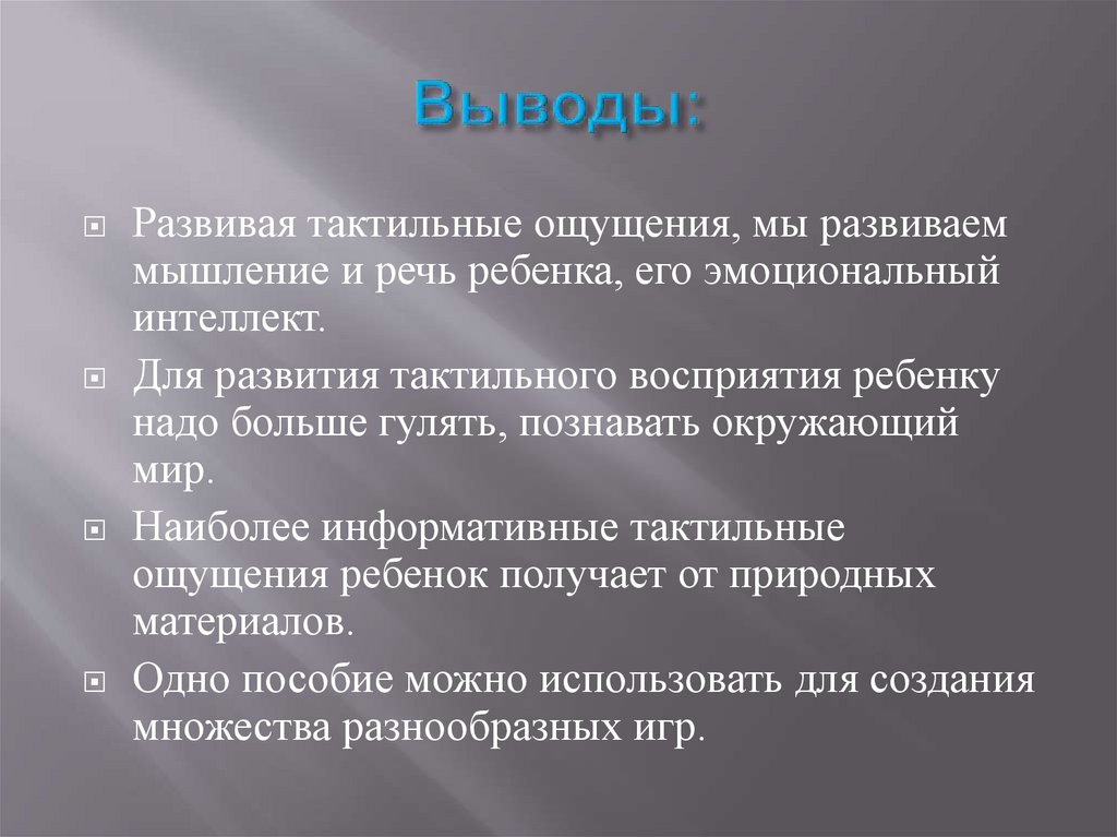 Развивая тактильные ощущения, мы развиваеммышление и речь ребенка, его эмоциональный