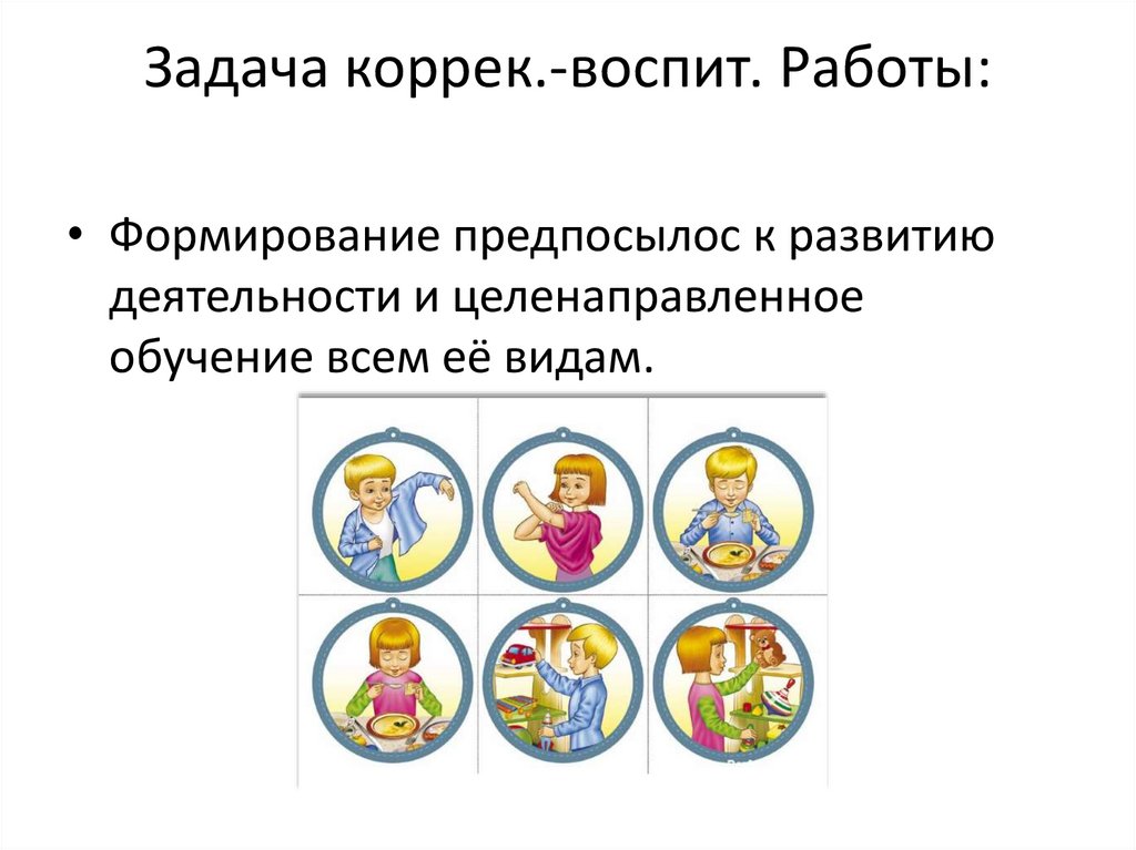 Задача коррек.-воспит. Работы:• Формирование предпосылос к развитию