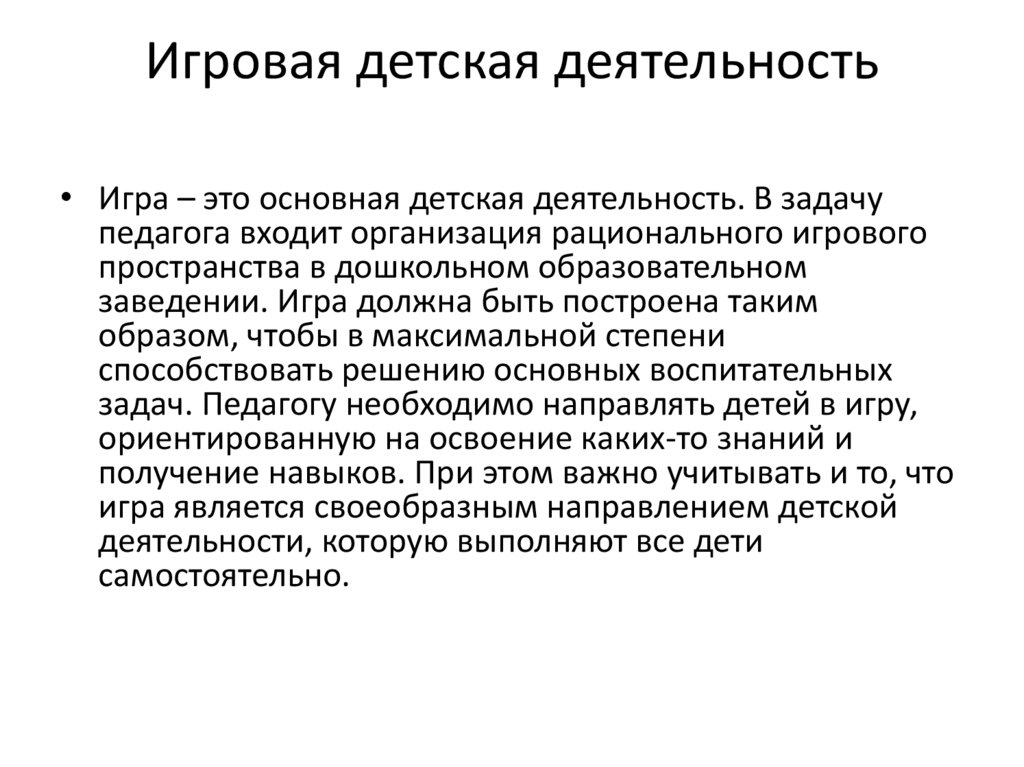 Игровая детская деятельность• Игра – это основная детская деятельность. В задачу