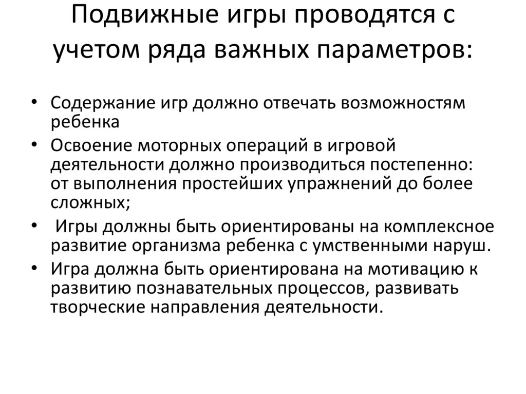 Подвижные игры проводятся сучетом ряда важных параметров: