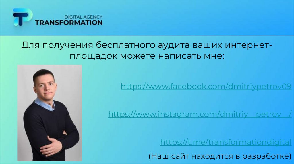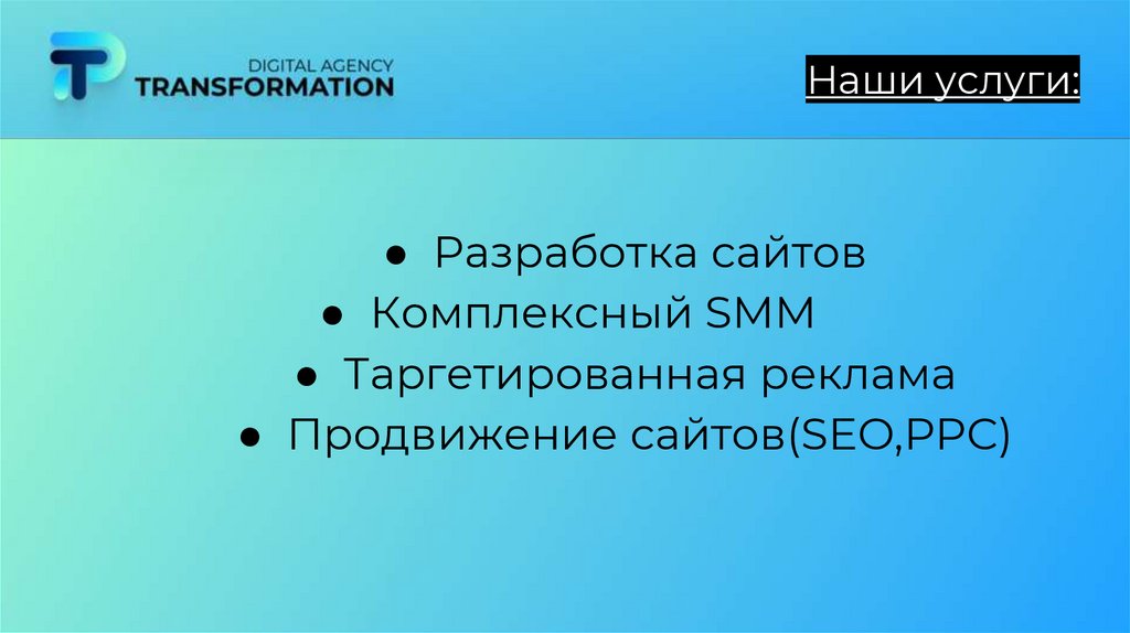 Transformation Digital: Разработка сайтов ● Комплексный SMM ● Таргетированная реклама ● Продвижение сайтов(SEO,PPC)