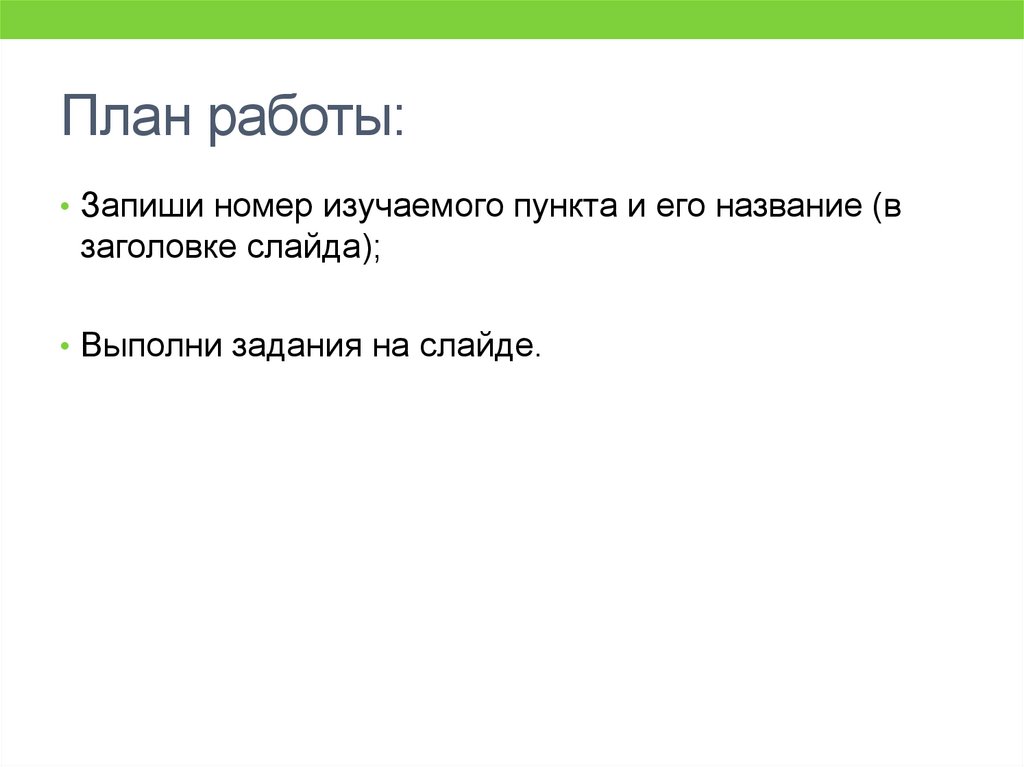 План работы:• Запиши номер изучаемого пункта и его название (в