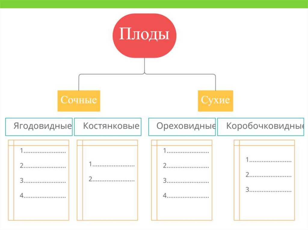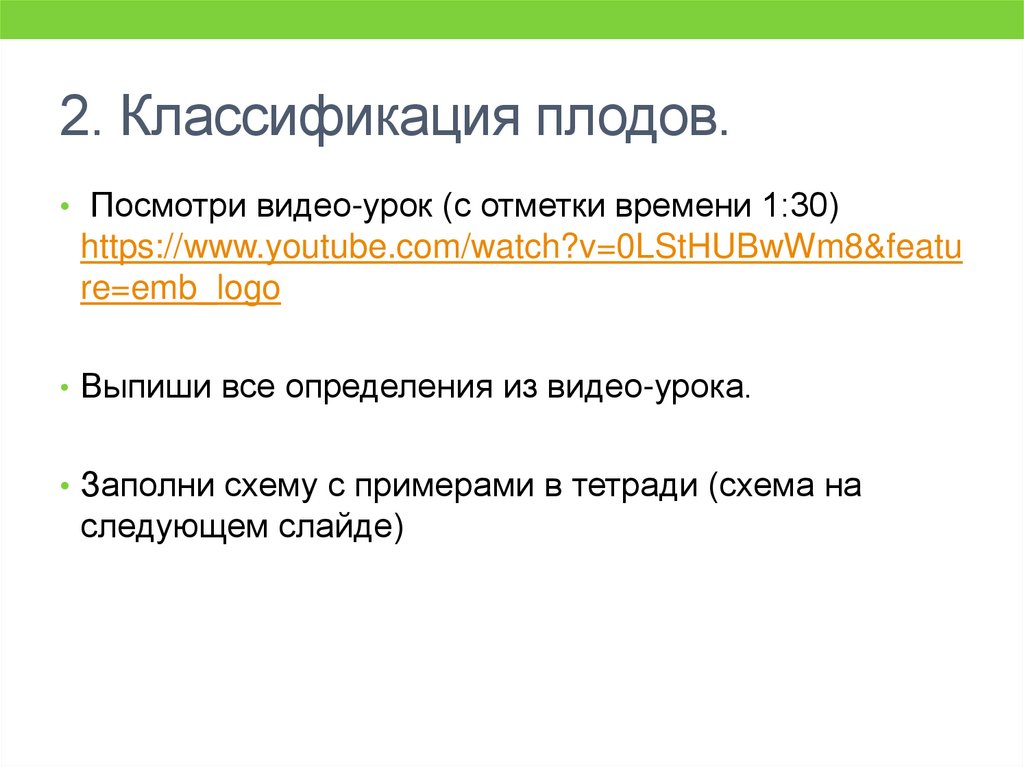 2. Классификация плодов.• Посмотри видео-урок (с отметки времени 1:30)